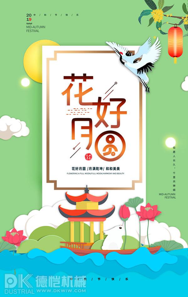 人間最美是金秋,五谷飄香豐收樂;一年最圓中秋月,桂樹玉兔伴嫦娥;人生最暖是團圓,翹首盼望團圓節(jié);最美季節(jié)賞圓月,快意人生幸福多。德愷機械全體員工祝大家中秋節(jié)日快樂!
